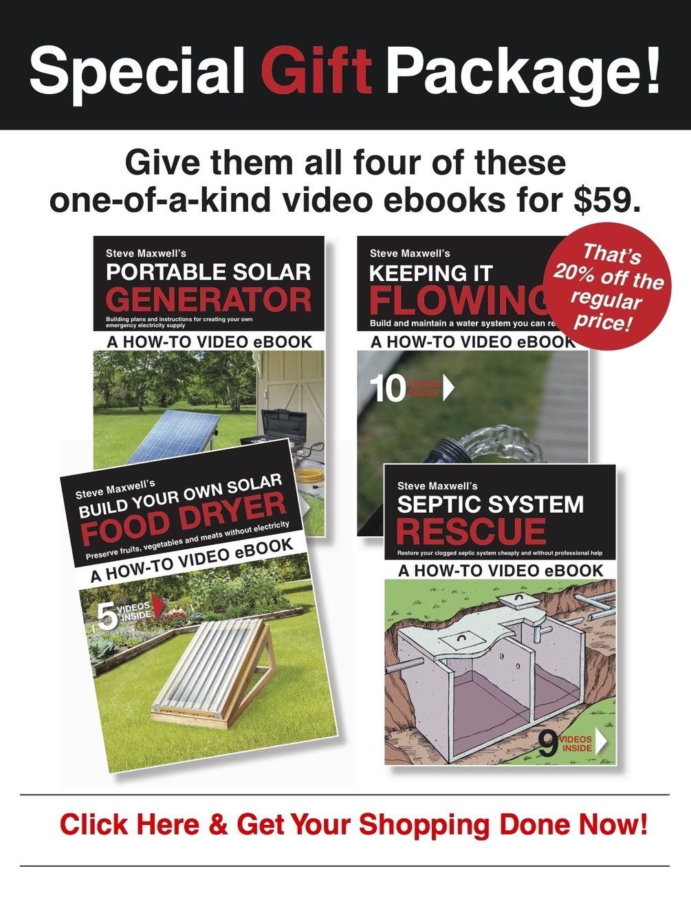 This is the place to get your gift of the SOLAR ENERGY & WATER SYSTEM COLLECTION that someone bought for you. The $59 price has already been paid. Downloading your gift for free is easy . . .